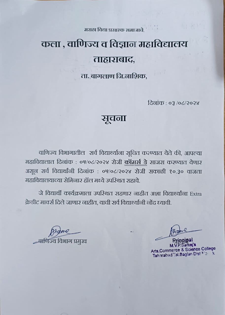 Copyright © 2023 M. V. P. SAMAJ's Arts & Commerce College, Taharabad, Nashik.